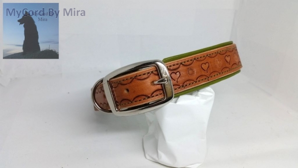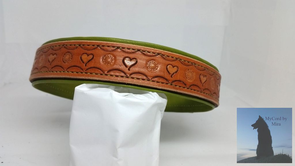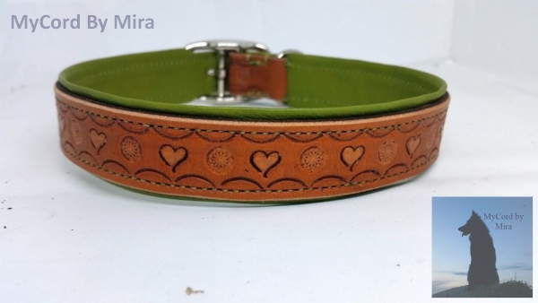 Halsband aus Blankleder "Herzen" handpunziert